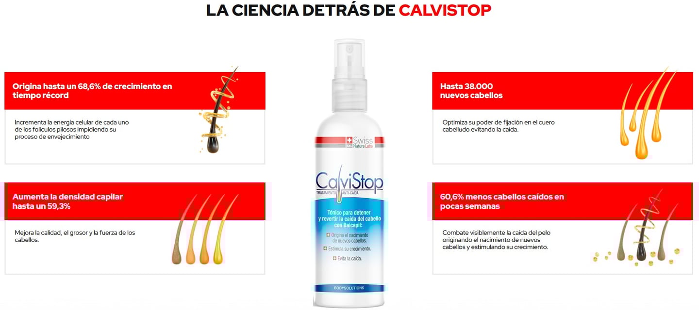 CalviStop Spray uses Baicapil, a plant-based complex clinically studied for its ability to stimulate hair growth. Combined with ingredients like biotin, saw palmetto, caffeine, and turmeric extract, it helps to restore nutrients, increase blood flow to the scalp, and boost keratin production. This synergy results in thicker, denser, and stronger strands over time.